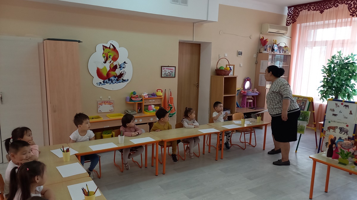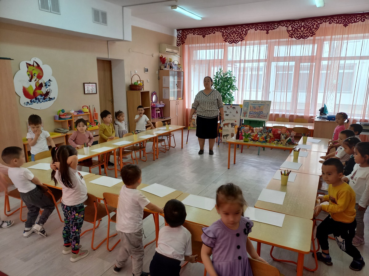 №14 «Айгөлек»бөбекжайы» №3 «Балапан» ортаңғы тобының жыл қорытынды оқу іс-әрекетінен тәрбиеші : Пәрменқұл Айнұр Досыбайқызы мақсаты:Балалардың жыл бойы алған білімдерін тиянақтау. Геометриялық пішіндер туралы және сандарды тура және кері санауды үйрету.Отбасына деген сүйіспеншіліктерін арттыру.Үлкенге құрмет, кішіге ізеттілік көрсету.Үй жануарлары мен жабайы жабайы жануарларды ажырату.Көктем мезгілінің ерекшеліктері туралы білу.Балаларды ұйымшыл, көпшіл, шыдамды болуға тәртиелеу. көрсету, түсіндіру,сұрақ-жауап, қорытындылау. суреттер,геометриялық пішіндер, слайд