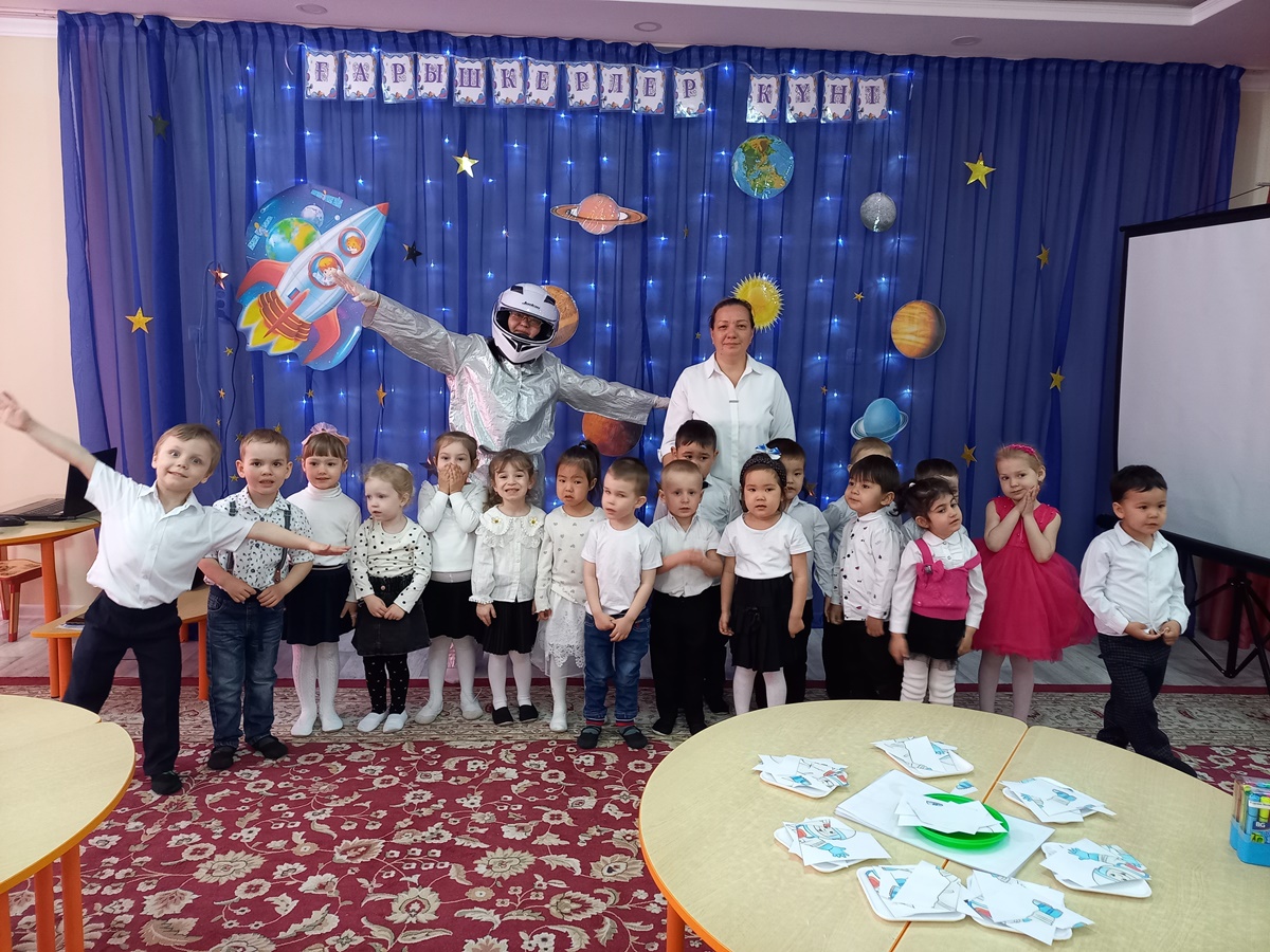 № 14 «Айгөлек»бөбекжаының бүлдіршіндері мен тәрбиешілері Ғарышкер ағаларымызды мереке күнімен құттықтайды.