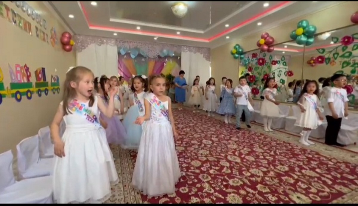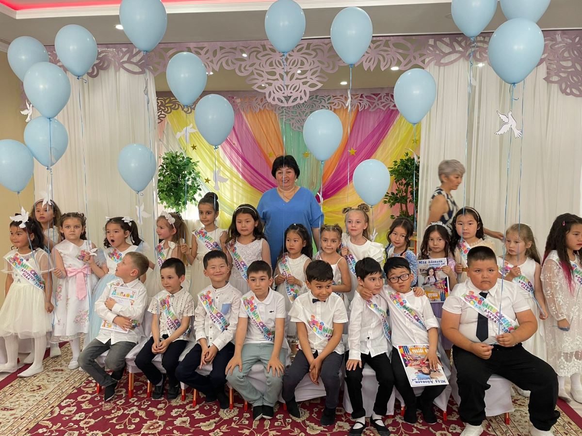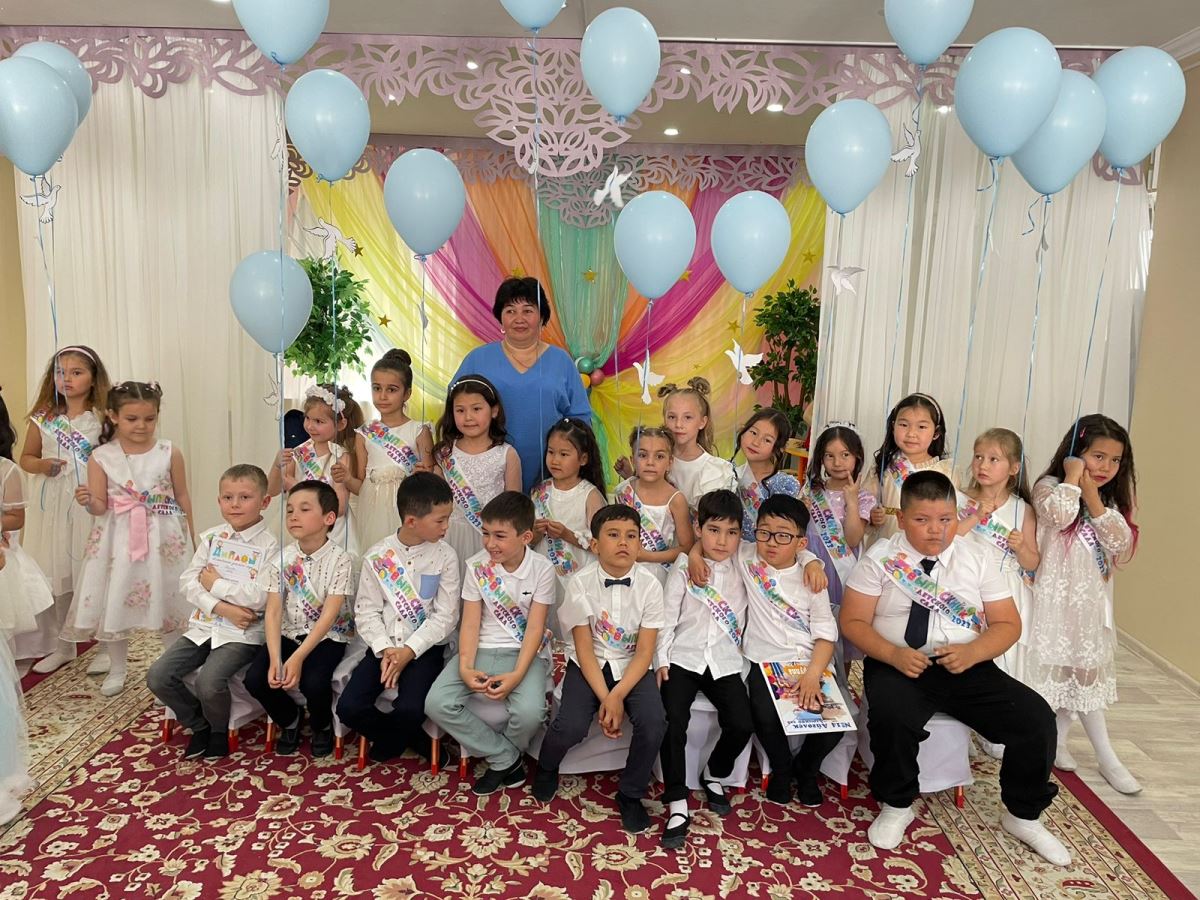 №6«Радуга»Мадтобының тәрбиешісі:Косназаровна Гулнар Калимбетова бастауымен,бүгін біз бір жыл мәпелеп,күтіп тәрбиелеген бүлдіршіндерімізді ұямыздан ұшырып, мектепке шығарып салғалы отырмыз. Олардың әр бірі мектепалды даярлық тобынан білім деген іргетасын қалап, мектепте үлгілі оқушы болатынына сеніміз мол.сәт сапар бүлдіршіндерімізге