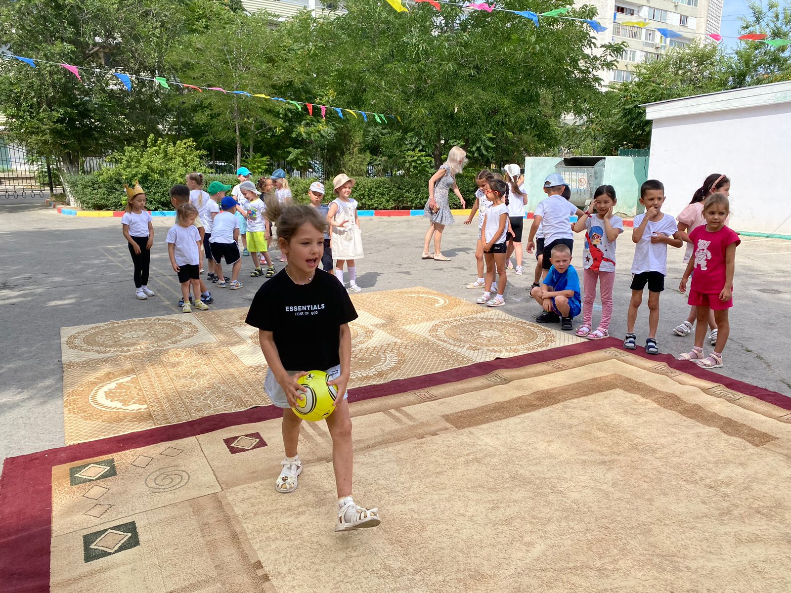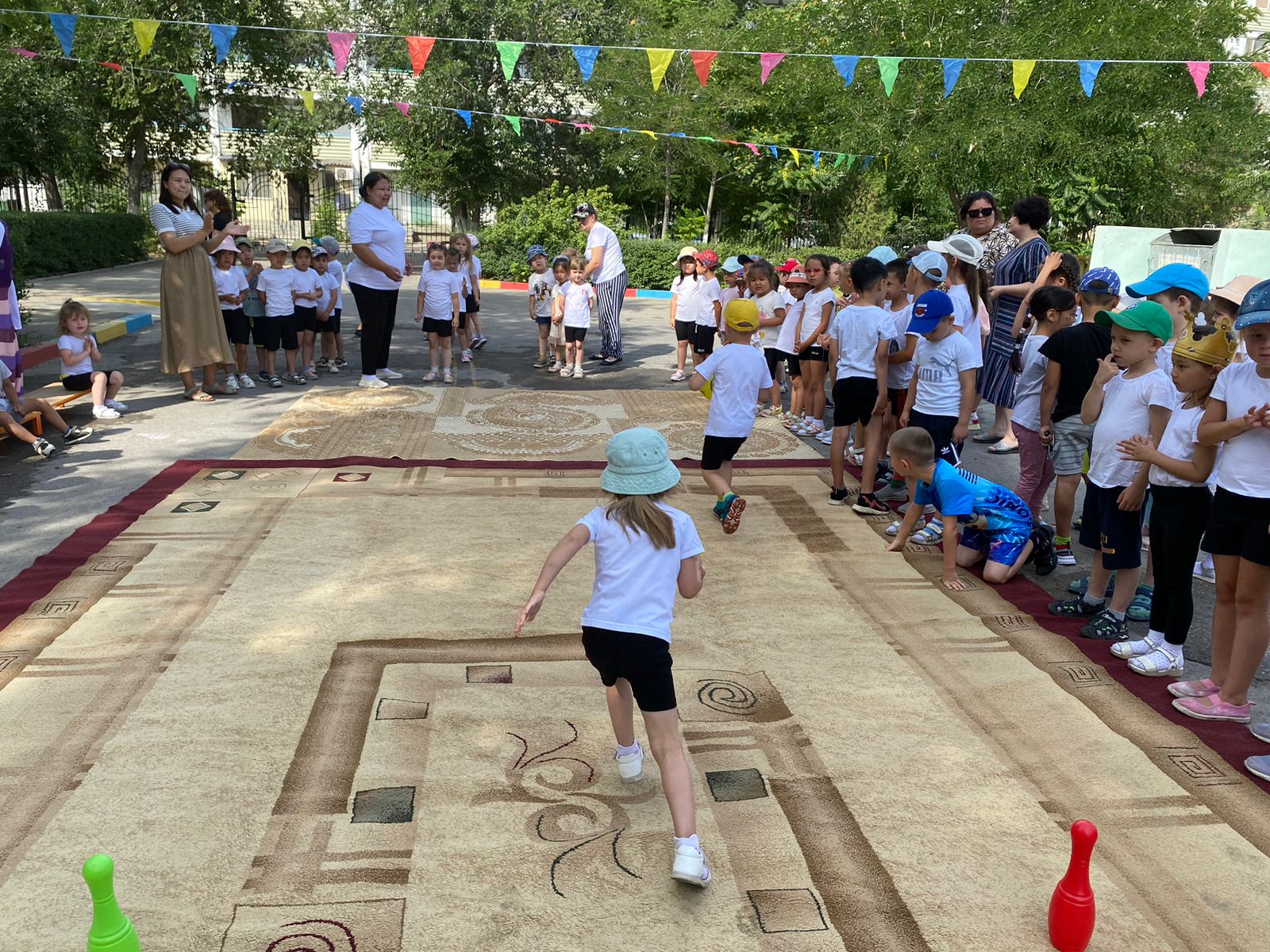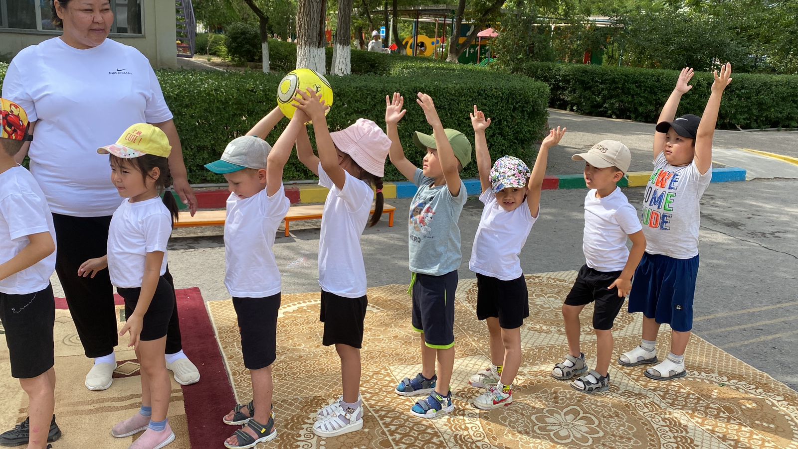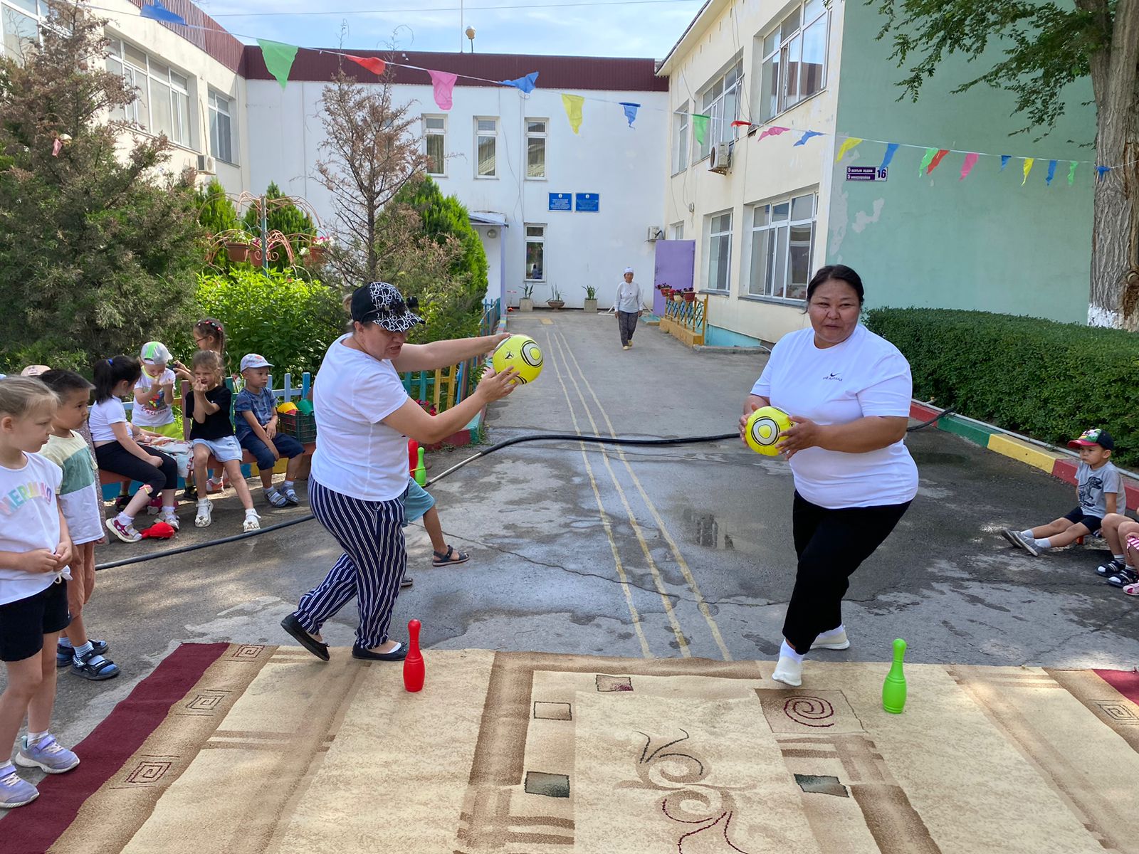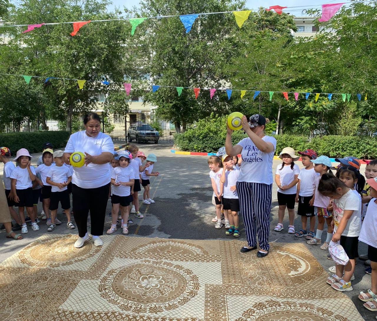 №14 «Айгөлек»бөбекжайында жазғы сауықтыру іс- шаралары өткізлуде.тақырыбы «Денсаулығы сәбидің –қуанышы әр үйдің» дене нұсқаушылар; Көптілеуова.Алмагул. Сара Сисенбайқызы мақсаты; балалардың көтеріңкі көңіл-күй туғызу.Балалардың денесін шыңдап күш-қуатын нығайту.шапшаңдыққа. ептілікке тәрбиелеу.Балаларды ойындар арқылы ақыл-ойының толысып өсуіне ықпал жасау. жарыс кезінде ойынға қызыға қатысуына жағдай жасау.бір-біріне достық сыйлау.