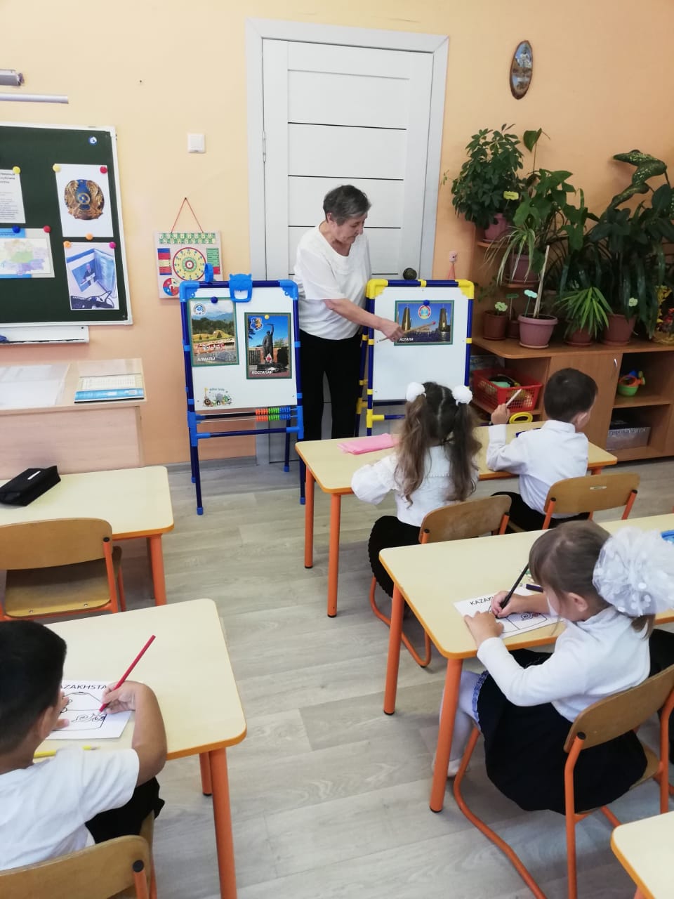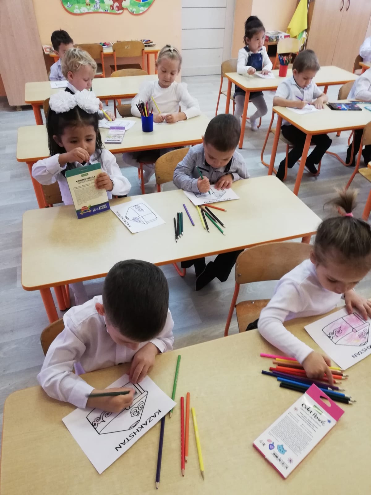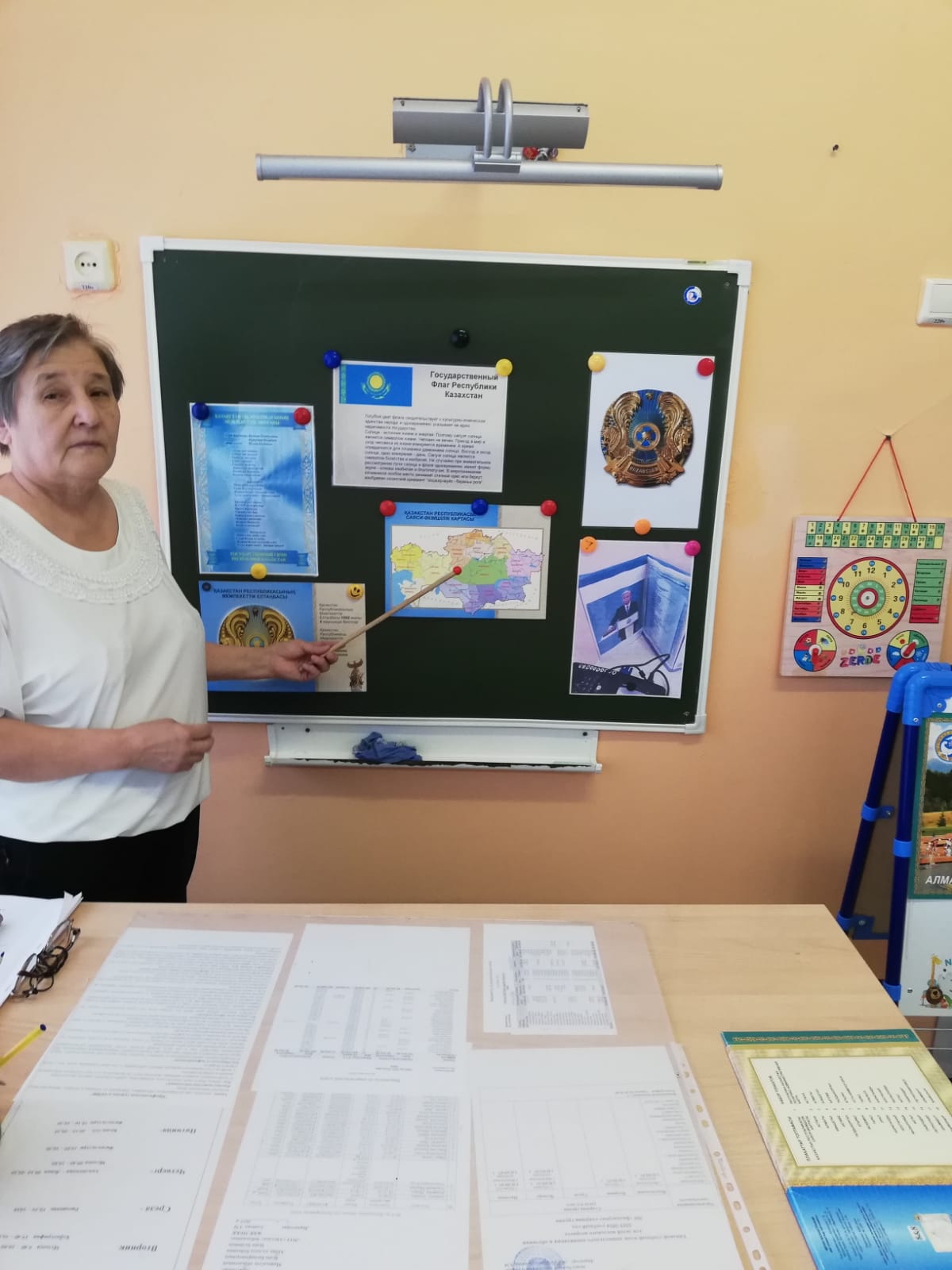 Наглядности:Картинки: флаг, герб, портрет авторов флага, герба, портрет президента РК, фотографии Астаны.