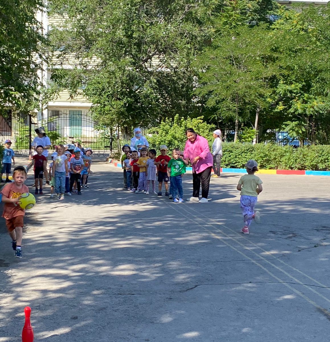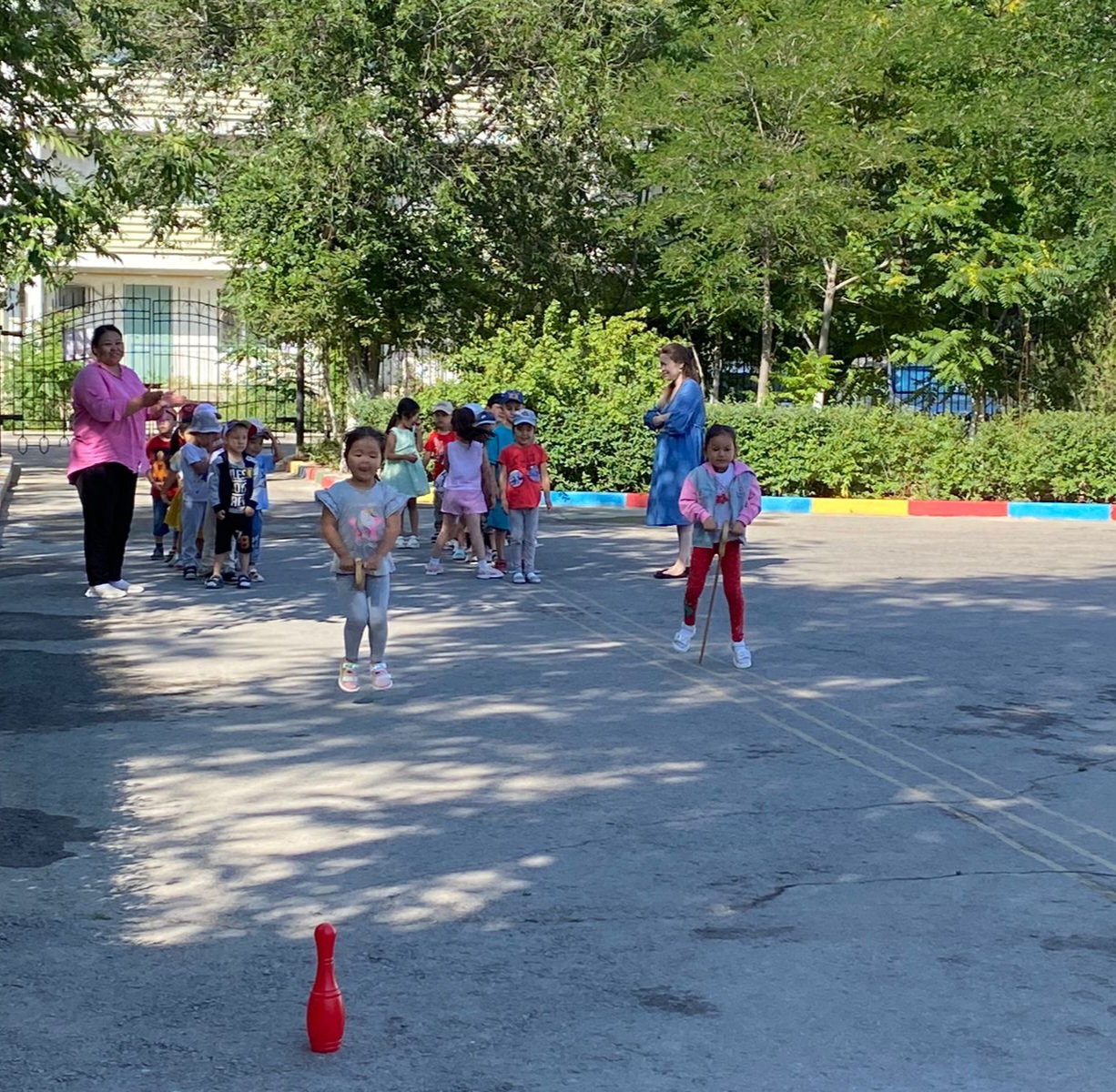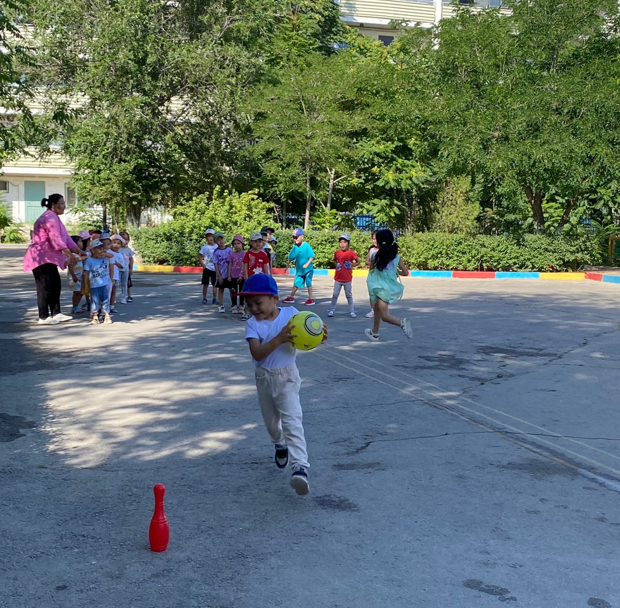 №14 «Айгөлек» бөбекжайында» жазғы сауықтыру оқу іс-әрекетінен тақырып; «Ойын ойнағанның ойы ұшқыр» эстафеталық жарыс жеке бас гигиенасын сақтауға,балаларды өз денсаулықтарды күтуді.ойын қимылдарының барлық түріне саналы.белсенді түрде қатысуға баулу.өз қабілеттерін.ептілікттерін оятуға ептілік беру.кедергілерден өтуге үйрету. Дене нұсқаушысы ; Көптілеуова Алмагул Сабырқызы. Сисенбай Сара Аманкелдіқызы.
