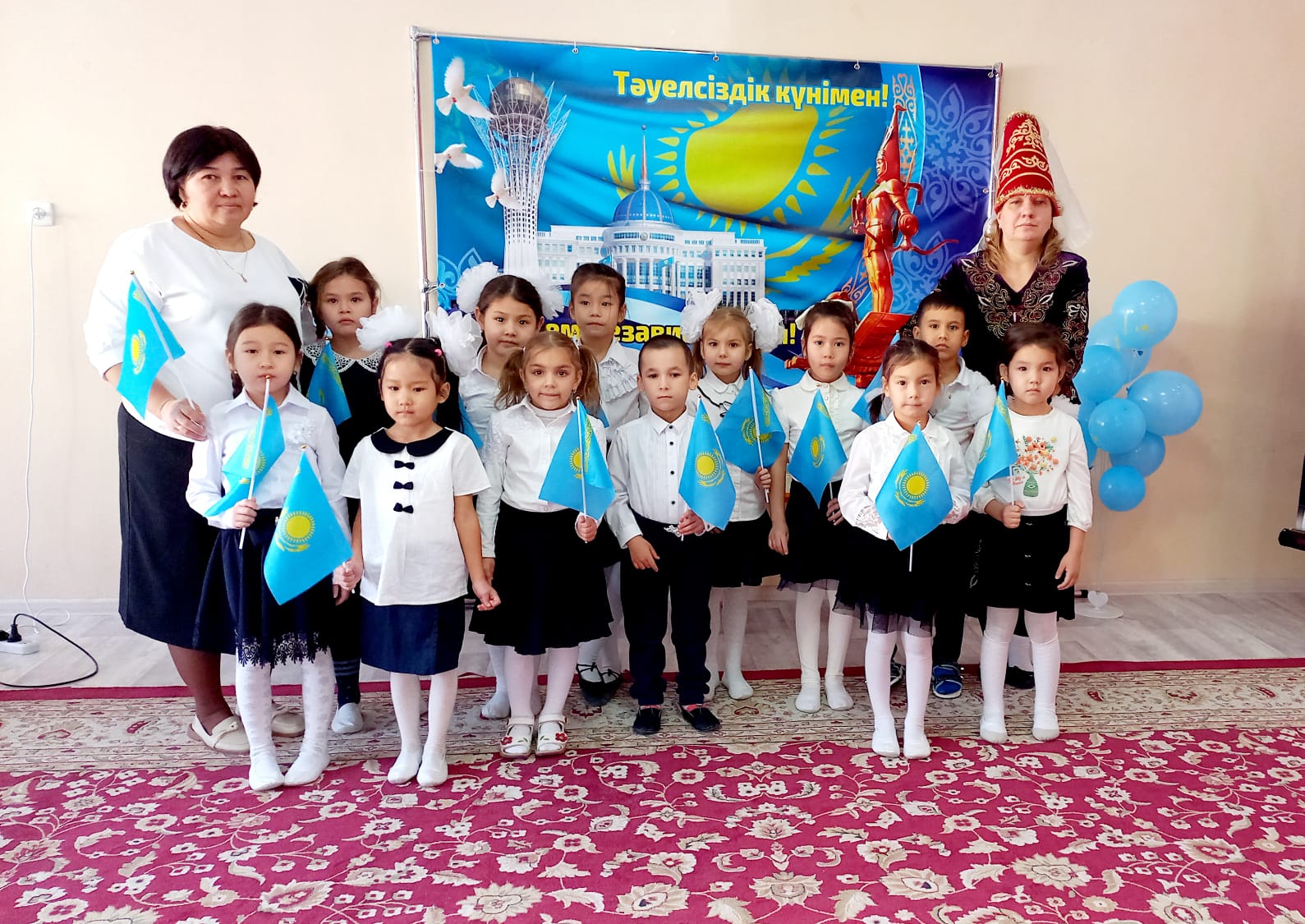- дегендей балаларды өз еліне, жеріне, отбасына деген сүйспеншілікке тәрбиелеу мақсатында атап айтқанда Манғыстау облысының білім басқармасының Ақтау қаласы бойынша білім бөлімінің «Оқу-әдістемелік орталығы » КММ-ның іс-шаралар жоспарына сәйкес, бөбекжай тәрбиеленушілері арасында «Тәуелсіздіктің сырлы бояулары» тақырыбында сурет байқауы болып өтті. Іс-шараға тәрбиелінушілер өте белсене қатысып, қатысқан барлық балалар дипломдармен марапатталды. Бөбекжайдың жылдық жоспары бойынша Тәуелсіздік күніне арналған ашық тақырыптық оқу- қызметі ұйымдастырылды.