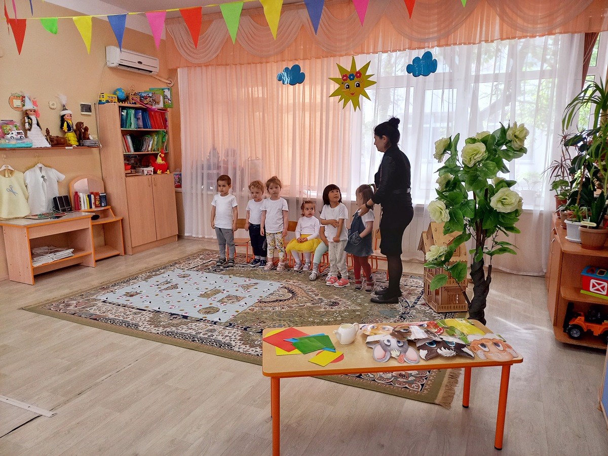 №2 «Ладушки» кіші тобының «Путешествие в сказку» атты қорытынды оқу іс-әрекетінен .мақсаты ; Балаларға көркем туындысын түсіндіре отырып,шығарманың көркем мәтінін түсіндіру. Еңбек сүйгіштікке баулу.ертегі кейіпкерлерін сахналау, ертегі мазмұнын меңгерту.Ертегіні сахналау арқылы ,тіл байлығын ,ойын.зейінін сөздік қорын дамыту.Достыққа ,әдемілікке.ұқыптылыққа, кішіпейлікке,еңбек сүйгіштікке тәрбиелеу. Оқу іс-әрекетін өткізген тәрбиеші; Махсудова Эсмира Нариманқызы.